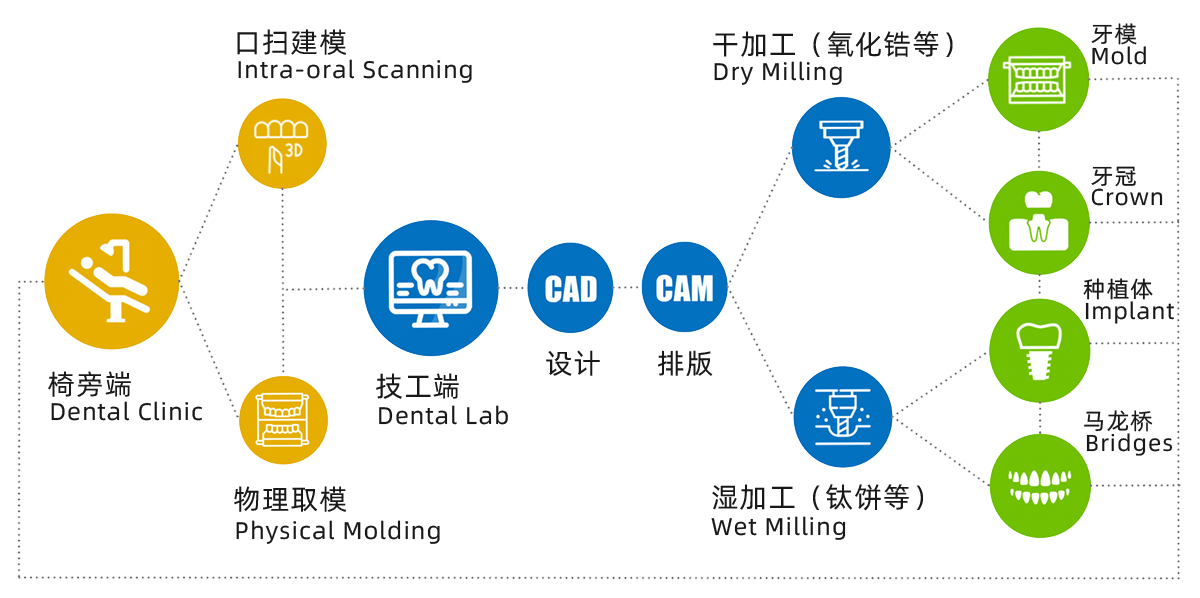 口腔一體化數(shù)字解決方案包含CAD和CAM兩部分。齒科CAD包括口腔數(shù)字掃描和義齒設(shè)計(jì),齒科CAM是指將義齒設(shè)計(jì)的模型發(fā)送到輸出設(shè)備,并通過(guò)切削或3D打印工藝把義齒成品制造出來(lái)。圖特林根的設(shè)備引進(jìn)德國(guó)先進(jìn)數(shù)控技術(shù)系統(tǒng),有效提高義齒加工的精度和生產(chǎn)效率,致力于成為國(guó)內(nèi)領(lǐng)先的口腔設(shè)備及云端義齒加工解決方案服務(wù)商。